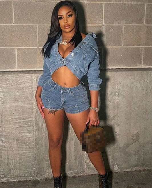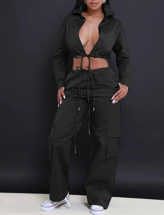 Ruched Lantern Sleeve Top & Slit Skirt Set